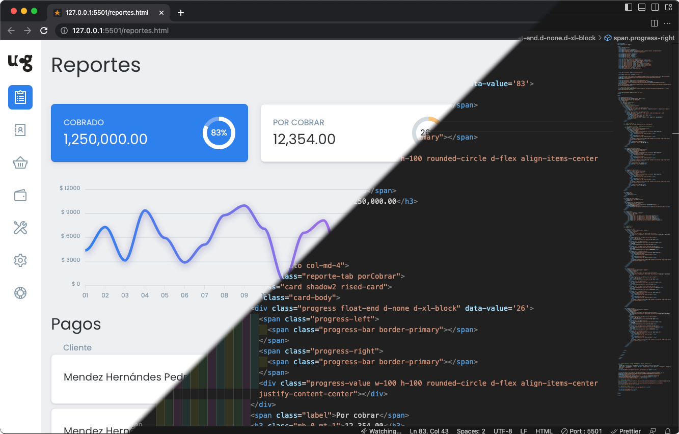 Teniendo el diseño probado y aprobado programé los componentes y estructuras del sitio, así los programadores de UCG pudieran integrarlos con el back-end.