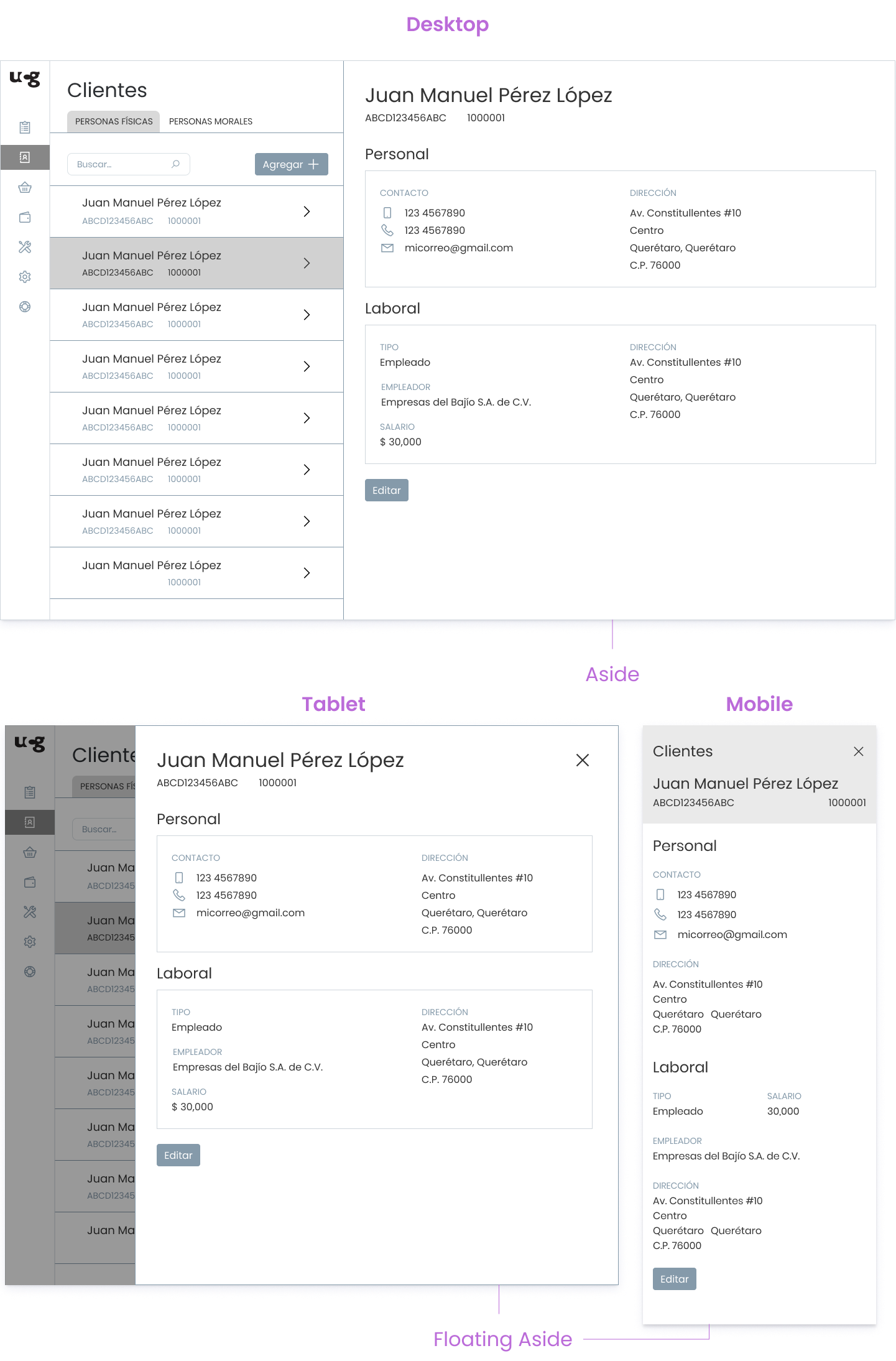 Después de las pruebas y de un par de iteraciones incorporé el sistema de diseño para generar los diseños en alta fidelidad.